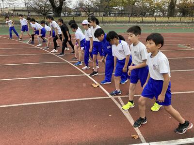 12月3日の大田原市小学校与一駅伝大会に向けて今日はD Iスタジアムで合同の練習会を実施しました。タイムを計り、速い順から3校合同のチームを編成していきます。頑張ろう!